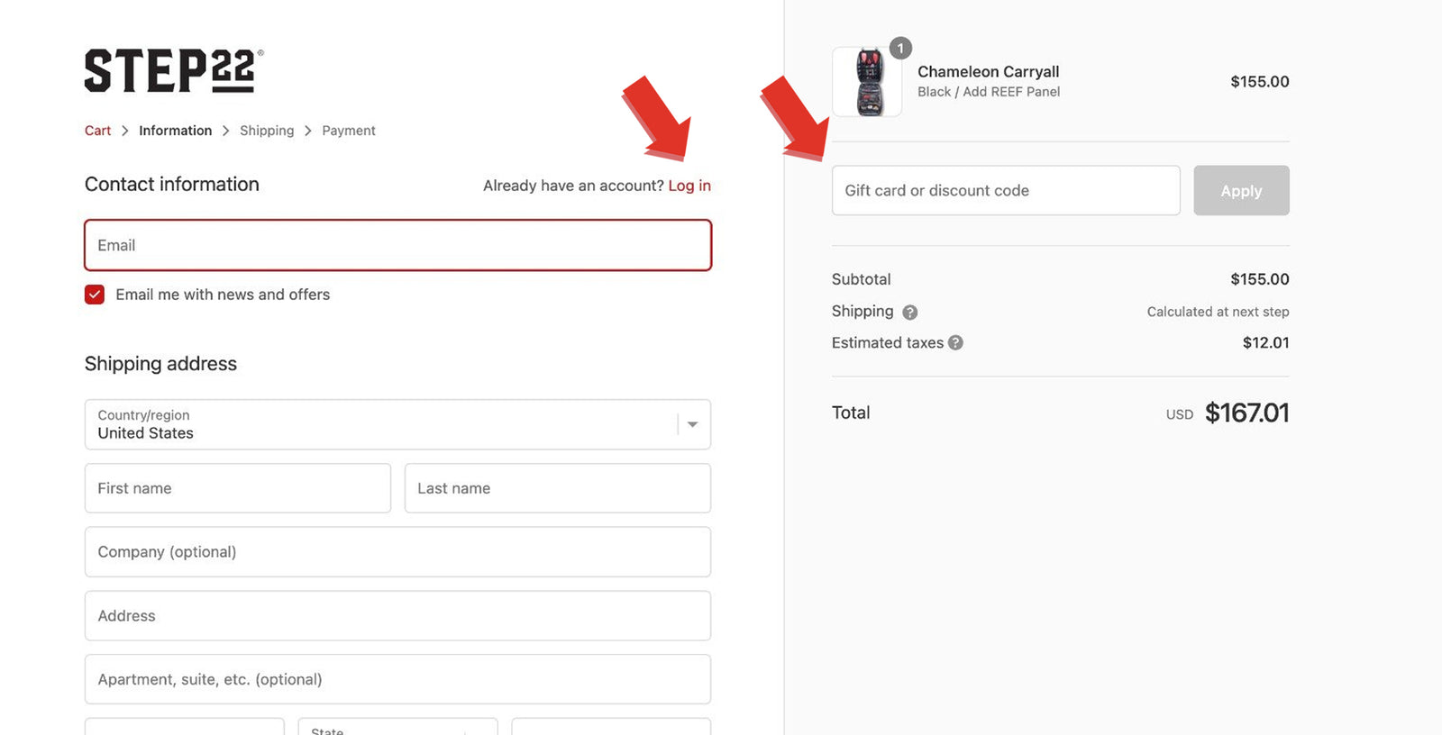 Create a FREE account. It's quick and easy, and also helps you track all of your STEP 22 orders and reward points.