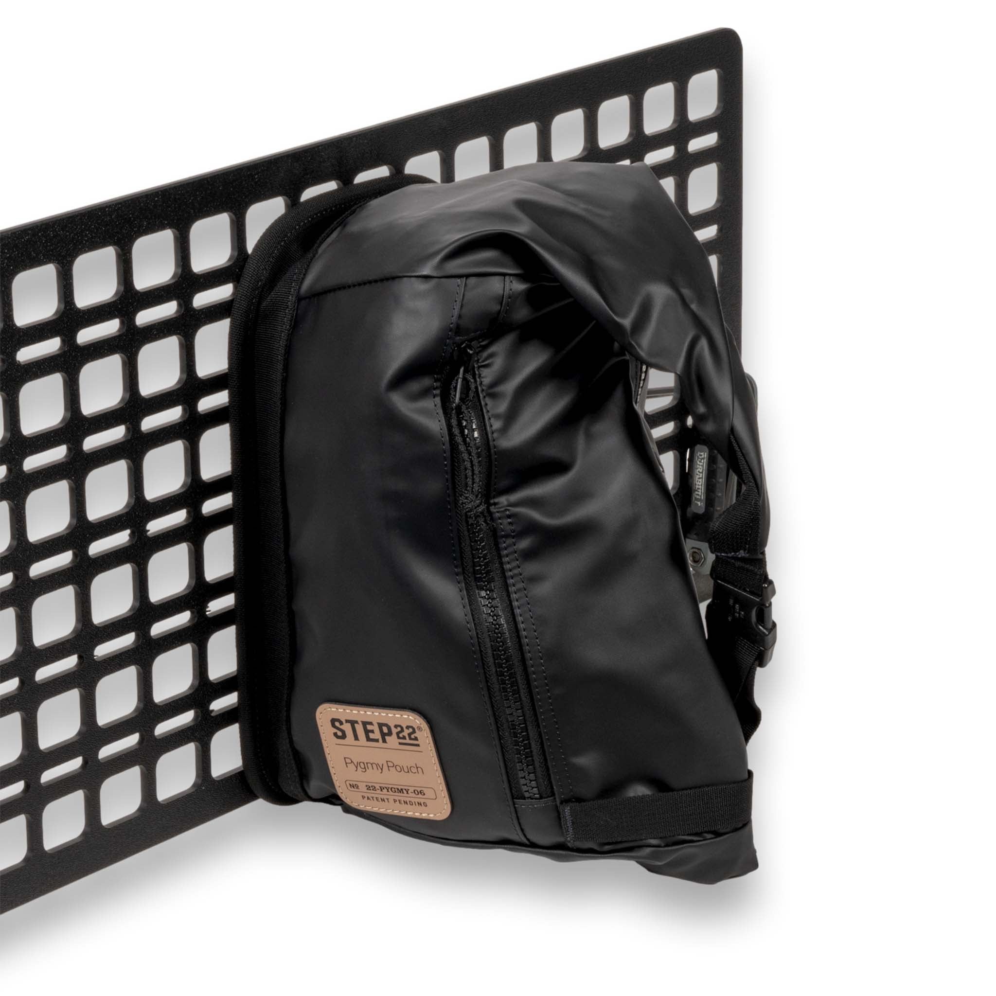 The Pygmy Pouch™ is a compact, vertical-mount gear pouch designed for fast, front-access storage as part of the STEP 22 AMP Trail System (Adaptive Modular Platform). Its unique roll-front opening functions like a roll-top bag rotated 90°, allowing you to open it from the front without digging or unloading. A built-in gear retention pocket keeps contents secure and organized, even when you’re on the move.
